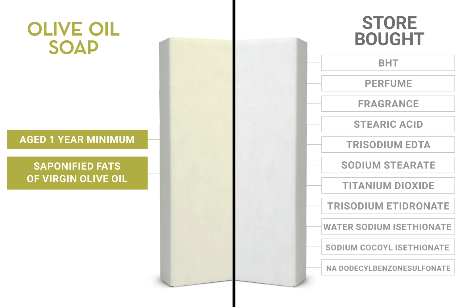 My Castile soap uses the the finest olive oil harvested from Italy and takes a year to make using ancient Babylonian chemistry techniques.